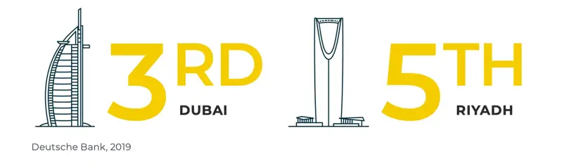 - According to Deutsche Bank Research (2019), Dubai is the third most expensive city in the world for gym memberships, while Riyadh is fifth. Compared to Stockholm, which is recognised for having the highest gym membership penetration rate globally, Dubai’s gym fees are 150% higher. Additionally, they are 25% more than London and 15% more than New York City.