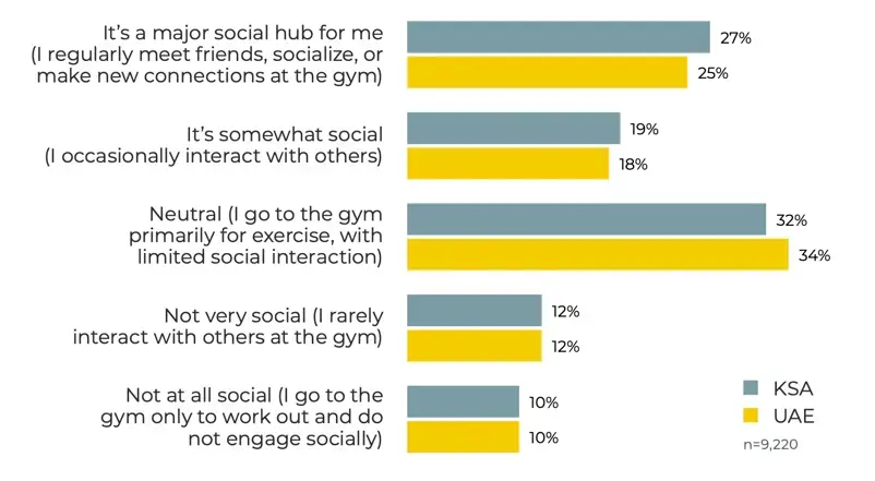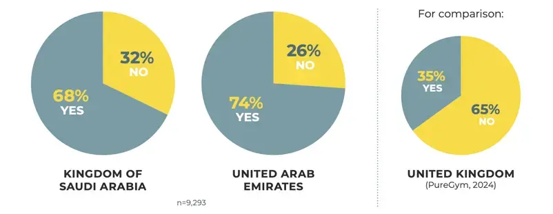 - 56% in Saudi Arabia and 58% in the UAE did not have a gym membership in the previous 12 months, highlighting substantial untapped potential.