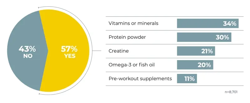 - Despite this, 82% describe themselves as at least somewhat active, with 79% working out twice a week or more.