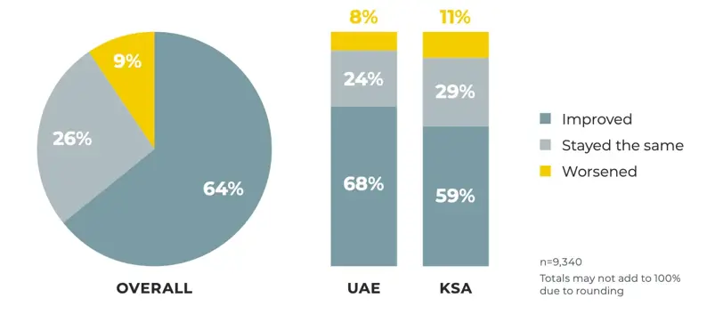 - 92% of respondents in KSA and the UAE aspire to improve their health, far higher than in the UK (76%) and the USA (75%).